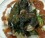 Hazırlanışı: İstavrit balıkları temizlenir ve pulları iyice alınır. Salamura üzüm yaprakları kullanımdan bir saat önce fazla olan tuzu çıksın diye ılık suya yatırılır. Daha sonra tek tek kurulanarak istavrit balıkları sarılıp, yağda kızartılır. Soğan, domates, sivribiber, havuç brunoise şeklinde doğranır. Margarin ile beraber bir tavada sotelenmeye başlanır. İçerisine kuru fasulye ve lezzet tuzu ilave edilir. Domates çorbası ile su karıştırılarak sos kıvamına gelinceye dek pişirilir. Servis tabağının ortasına kuru fasulye sotesi, üzerine istavrit balıkları ve çevresine domates sos gezdirilerek servis edilir. |